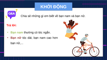 BÀI 22: MỘT SỐ ĐẶC ĐIỂM CỦA NAM VÀ NỮ (Tiết 1) KHỞI ĐỘNG