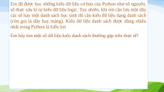 Em đã được học những kiểu dữ liệu cơ bản của Python như số nguyên,