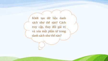 Em hãy tìm một số dữ liệu kiểu danh sách thường gặp trên thực tế? Khởi tạo dữ liệu danh sách như thế nào? Cách