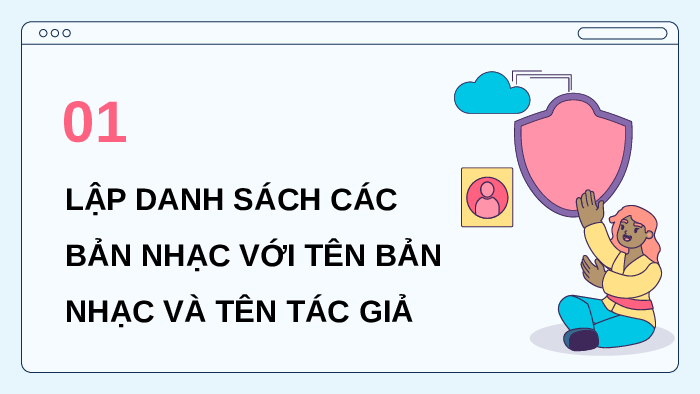 01 Lập danh sách các bản nhạc với tên bản nhạc và tên tác giả