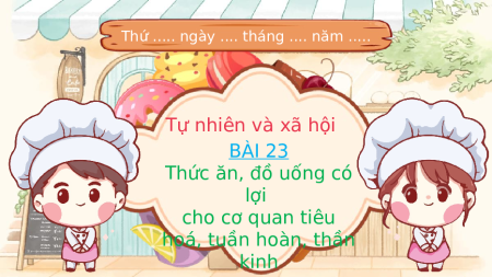 Thứ ..... ngày .... tháng .... năm ..... Tự nhiên và xã hội BÀI 23 Thức ăn, đồ uống có lợi cho cơ quan tiêu hoá, tuần hoàn, thần kinh