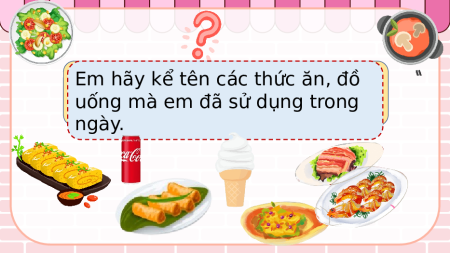 đầu buổi học chúng ta cùng khởi động nhé! Bạn nhỏ thích ăn những gì?