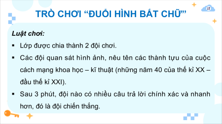 § Các đội quan sát hình ảnh, nêu tên các thành tựu của cuộc