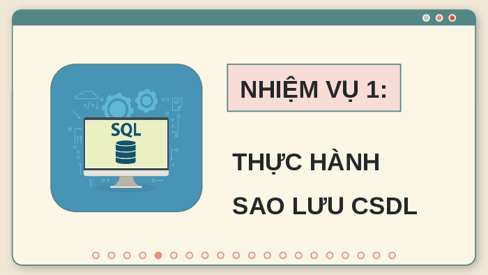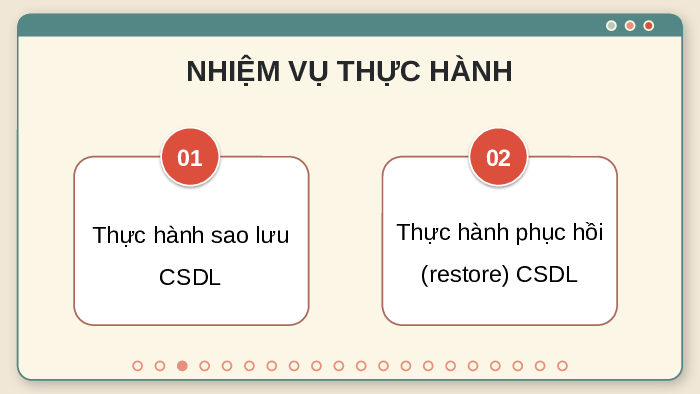 NHIỆM VỤ THỰC HÀNH 01 02 Thực hành sao lưu Thực hành phục hồi CSDL (restore) CSDL