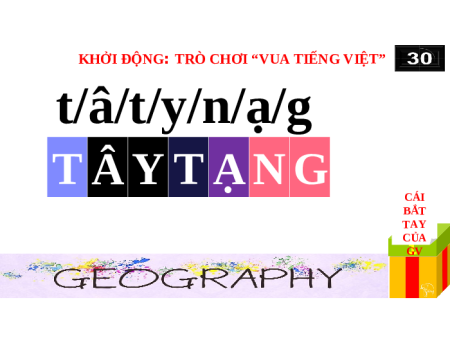 KHỞI ĐỘNG: TRÒ CHƠI “VUA TIẾNG VIỆT” t/â/t/y/n/ạ/g T Â Y T Ạ N G CÁI BẮT TAY CỦA GV