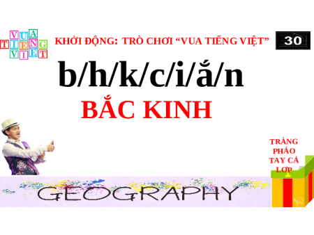 KHỞI ĐỘNG: TRÒ CHƠI “VUA TIẾNG VIỆT” b/h/k/c/i/ắ/n BẮC KINH TRÀNG PHÁO TAY CẢ LƠP