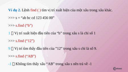 Ví dụ 2. Lệnh find ( ) tìm vị trí xuất hiện của một xâu trong xâu khác.