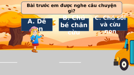 Bài trước em được nghe câu chuyện gì? B. Chú A. Dê C. Chó sói bé chăn và cừu con non cừu