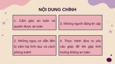 đã trải qua hoặc em biết. BÀI 26: PHÒNG TRÁNH BỊ XÂM HẠI TIẾT 1 NỘI DUNG CHÍNH 1. Cảm giác an toàn và