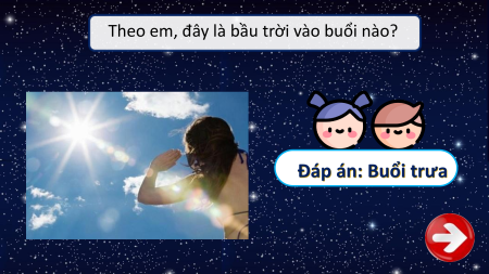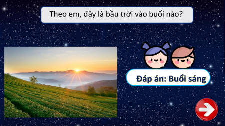 Theo em, đây là bầu trời vào buổi nào? Đáp án: Buổi sáng