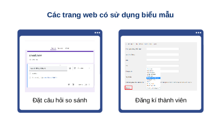 Các trang web có sử dụng biểu mẫu Đặt câu hỏi so sánh Đăng kí thành viên