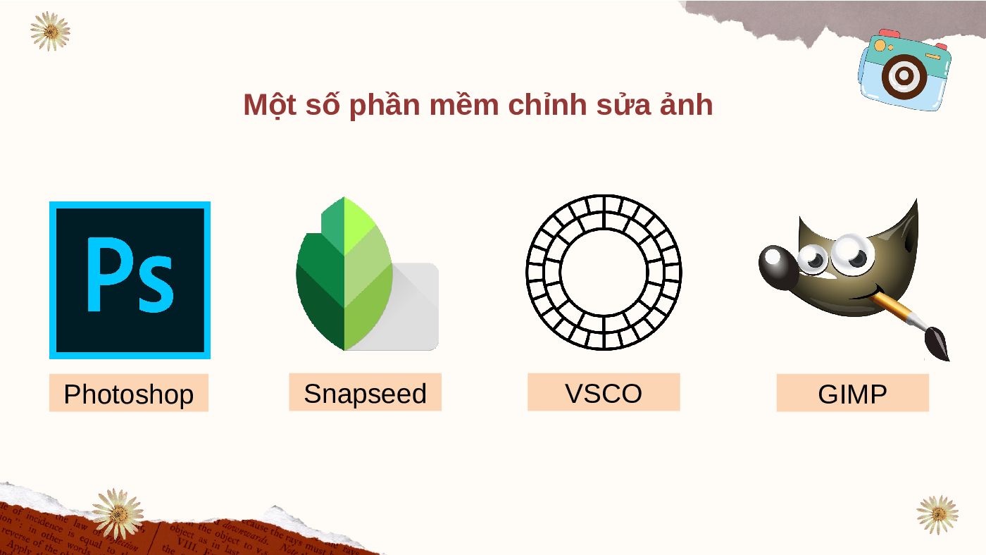 Một số phần mềm chỉnh sửa ảnh Photoshop Snapseed VSCO GIMP