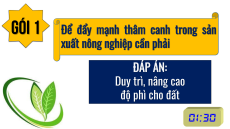 http://dichvudanhvanban.com GÓI 1 GÓI 3 GÓI 2 GÓI 4 GÓI 1 Đối Cây Để tượng lương đẩy mạnhcủa thực có sản đặc thâm xuất điểm canh nông sinh trong s thái ản x n ph gh ù uấ t iệp hợp là vớ nông i nkhí gh hậ iệp u vù cần ng ph ôn ải đới? ĐÁP ĐĐ ÁP ÁP ÁN : ÁN ÁN : Cây trồng Duy trì , và Lúa vật mì nâng nuôi cao độ phì cho đất GÓI 2 C Tư Ưa ây liệu khí sản hậu trồng xu và ất nóng vật chủ ẩm, yếu ngập nuôi và sinh không nước, đất trưởng th ph vàù ể ph th sa át ay là tr ith đểnế ặc tr đi th on ểm eo g snông i qunyh l uậ n tht gh ái n iệp củ àoa? là ĐÁP Đ ÁP ÁN: ÁN : Quy Ấn Đất Lúa luật Độ trồng gạo sinh học