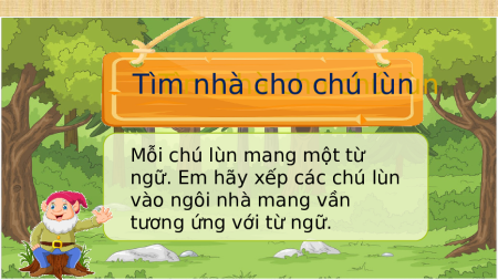 ngữ. Em hãy xếp các chú lùn vào ngôi nhà mang vần