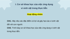CH2. Trình bày cơ sở khoa học của việc ứng dụng vi sinh vật
