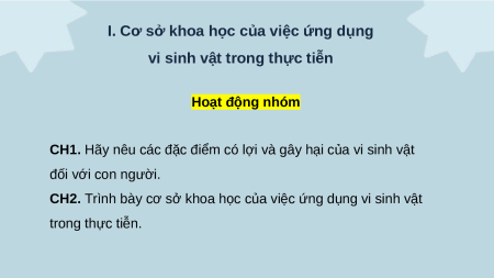 Giáo án Powerpoint Bài 27: Ứng dụng vi sinh vật trong thực tiến Sinh học 10 Chân trời sáng tạo