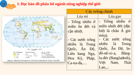 I. Đọc bản đồ phân bố ngành nông nghiệp thế giới