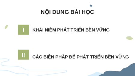 PHÁT TRIỂN BỀN VỮNG NỘI DUNG BÀI HỌC I