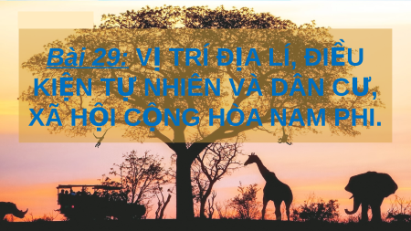 Bài 29: V Ị TRÍ Đ A Ị LÍ, ĐI U Ề KI N Ệ T Ự NHIÊN VÀ DÂN C , Ư XÃ H I Ộ C NG HÒA Ộ NAM PHI. MỤC TIÊU BÀI H C Ọ Phân tích đư c ợ n ả h Phân tích đư c ợ các tác hư n ở g của v ịtrí đ a ị lí, đ n ộ g của đ c ặ đi m ể đ c ặ đi m ể t ự nhiên và dân c , ư xã h i ộ t i ớ phát tài nguyên thiên nhiên tri n ể kinh t ế - xã h i ộ . đến phát tri n ể kinh t . ế