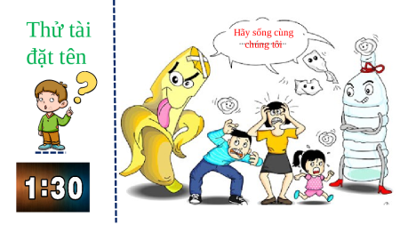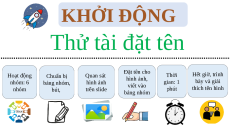 KHỞI ĐỘNG Thử tài đặt tên Đặt tên cho Hoạt động Chuẩn bị Quan sát Thời Hết giờ, trình hình ảnh, nhóm: 6 bảng nhóm, hình ảnh gian: 1 bày và giải viết vào nhóm bút, trên slide phút thích tên hình bảng nhóm Thử tài Hãy sống cùng