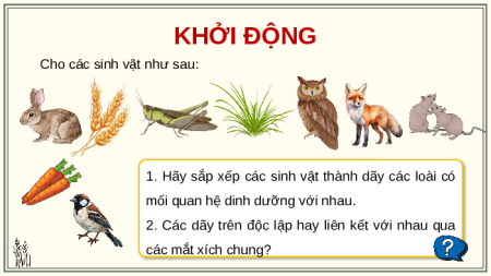 SINH HỌC 12 CHÀO MỪNG CÁC EM ĐẾN VỚI BÀI HỌC HÔM NAY! KHỞI ĐỘNG Cho các sinh vật như sau:
