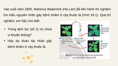 tìm hiểu nguyên nhân gây bệnh khảm ở cây thuốc lá (hình 29.1). Qua thí