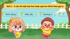 Nói 2 – 3 câu về một loại hoa hoặc quả em thích theo gợi ý: