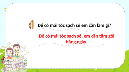 Nêu được các việc làm để giữ đầu tóc, cơ thể sạch sẽ 01 02