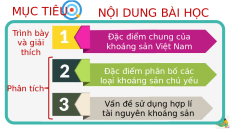 và nó được xếp vào nguồn tài trả lời nguyên gì? BÀI 3: KHOÁN G SẢN VIỆT NAM MỤC TIÊU NỘI DUNG BÀI HỌC Trình bày Đặc điểm chung của và giải khoáng sản Việt Nam thích