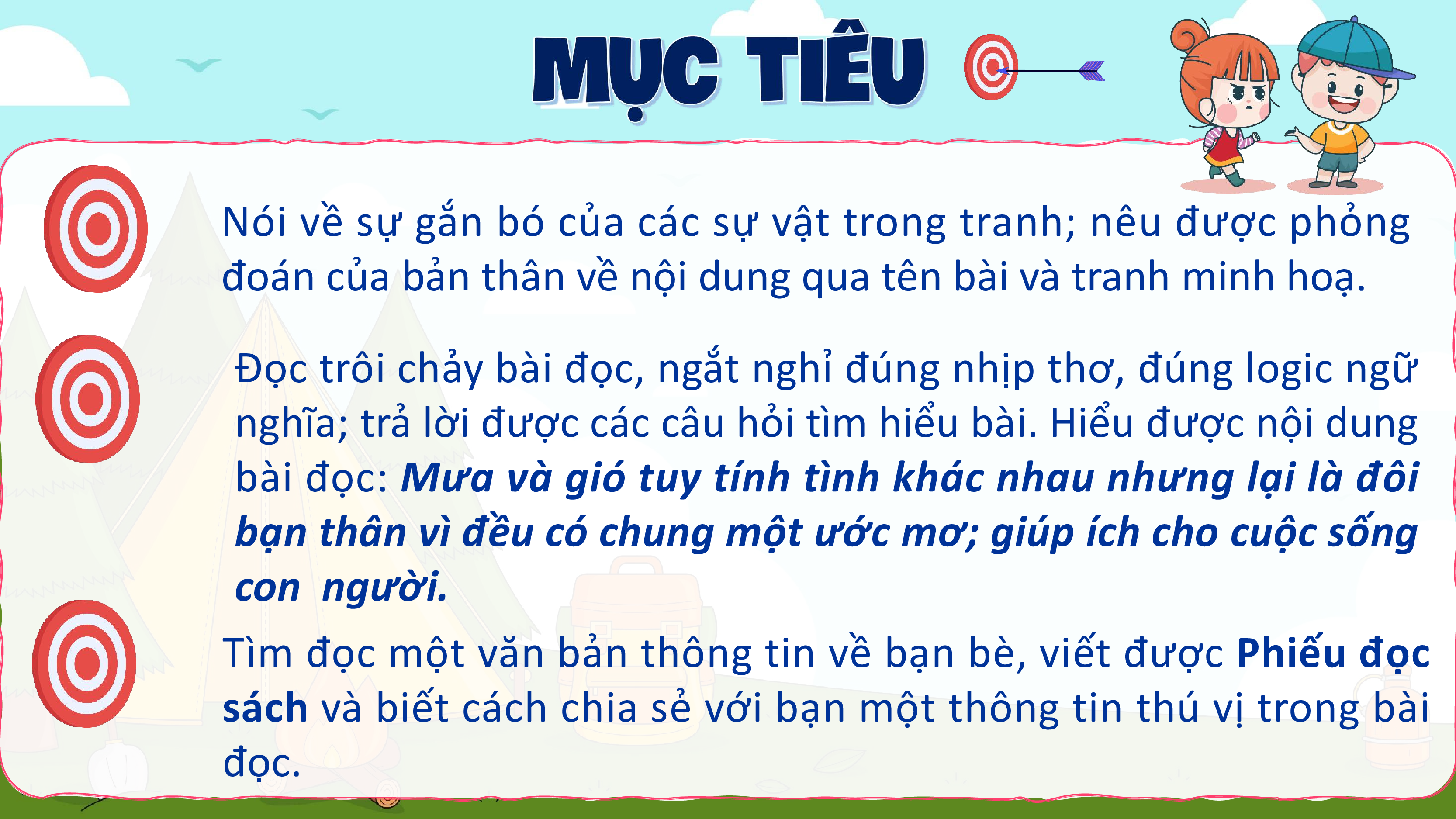 Đọc trôi chảy bài đọc, ngắt nghỉ đúng nhịp thơ, đúng logic ngữ