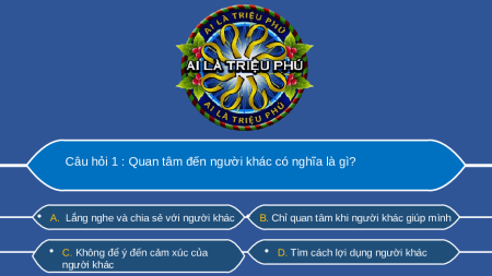 A. Lắng nghe và chia sẻ với người khác B. Chỉ quan tâm khi người khác giúp mình