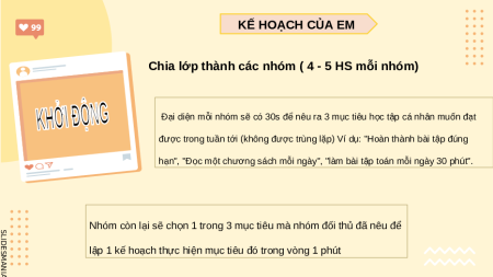 Đại diện mỗi nhóm sẽ có 30s để nêu ra 3 mục tiêu học tập cá nhân muốn đạt