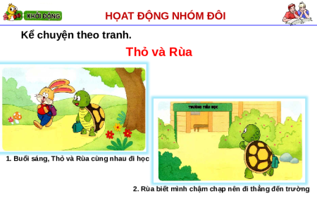 1. Buổi sáng, Thỏ và Rùa cùng nhau đi học