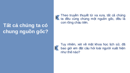 Giáo án Powerpoint Bài 3 Lịch sử 6 Chân trời sáng tạo: Nguồn gốc loài người