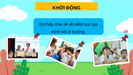 Em hãy chia sẻ về niềm vui của mình khi ở trường. Quan sát tranh và dự đoán nội dung bài học BÀI 3: NGÀY EM VÀO ĐỘI