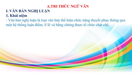 Cho biết tính mạch lạc trong văn bản nghị luận A.TRI THỨC NGỮ VĂN I. VĂN BẢN NGHỊ LUẬN 1. Khái niệm