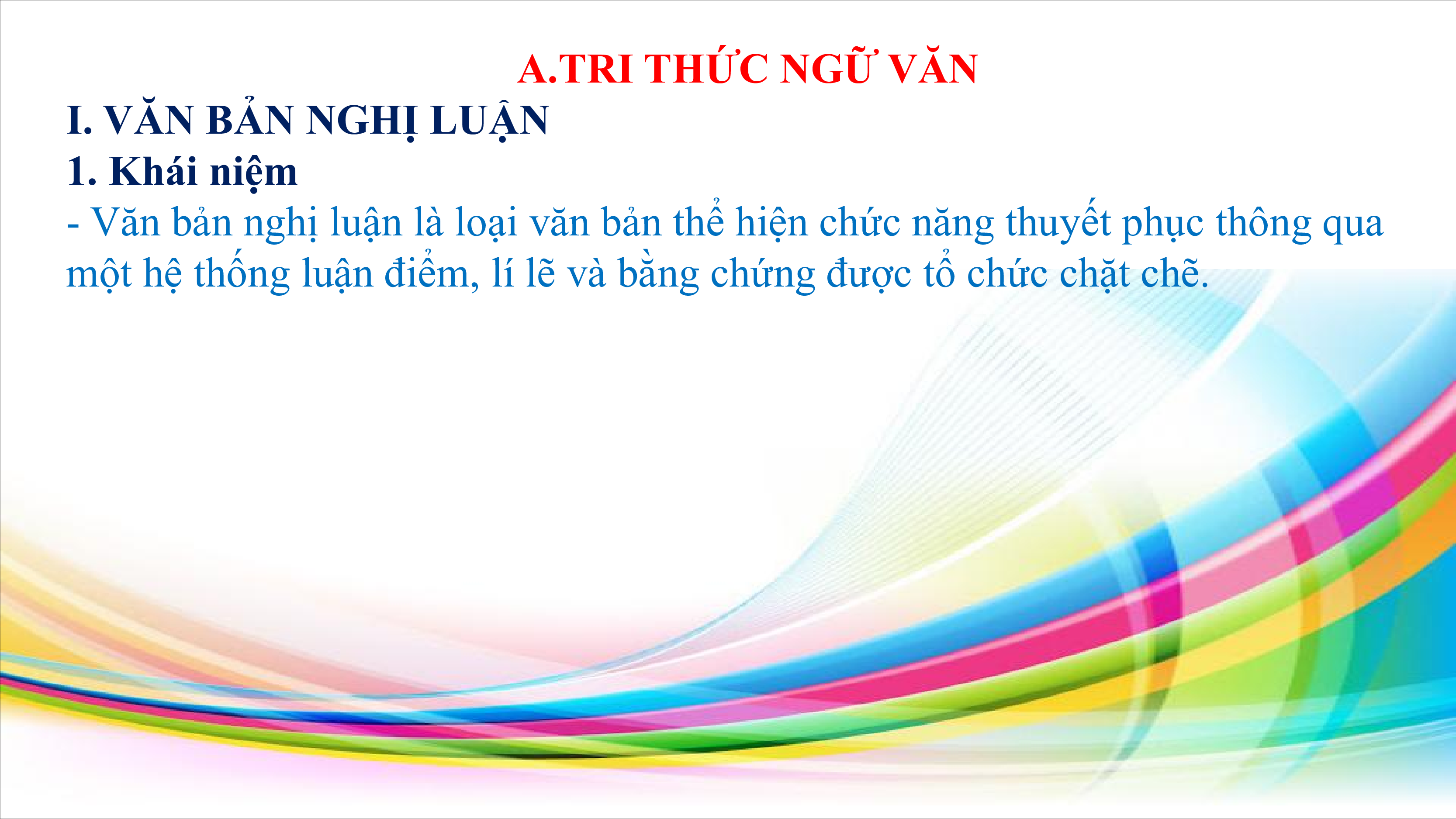 I. VĂN BẢN NGHỊ LUẬN 1. Khái niệm
