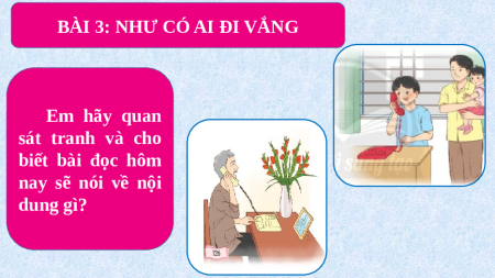 BÀI 3: NHƯ CÓ AI ĐI VẮNG Em hãy quan sát tranh và cho biết bài đọc hôm nay sẽ nói về nội dung gì?