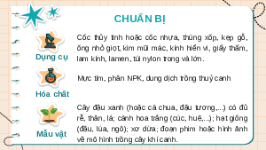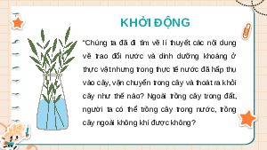Giáo án Powerpoint Bài 3 Sinh học 11 Chân trời sáng tạo: Thực hành: Thí nghiệm trao đổi nước ở thực vật và trông cây bằng thủy canh, khí canh