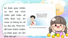 An được giao nhiệm vụ làm bài trình chiếu giới thiệu về châu Nam Cực. An chưa có thông tin về lục địa này. Theo em,