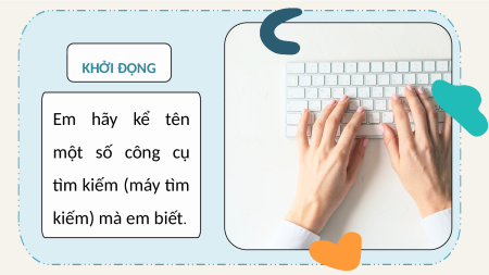 CẢ LỚP ĐẾN VỚI BÀI HỌC MỚI! KHỞI ĐỘNG Em hãy kể tên một số công cụ tìm kiếm (máy tìm kiếm) mà em biết.