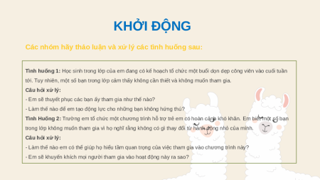 tới. Tuy nhiên, một số bạn trong lớp cảm thấy không cần thiết và không muốn tham gia. Câu hỏi xử lý: