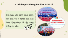 - Em sẽ khuyến khích mọi người tham gia vào hoạt động này ra sao? KHỞI ĐỘNG
