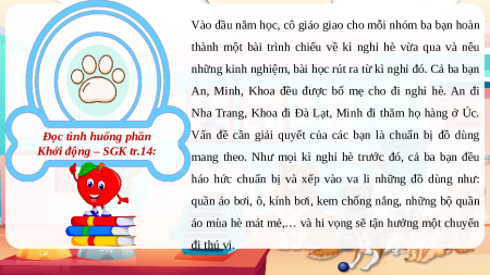 thành một bài trình chiếu về kì nghỉ hè vừa qua và nêu