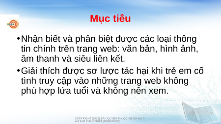 Bài 3. Thông tin trên trang web (2 tiết) Mục tiêu