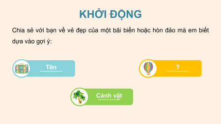 Chia sẻ với bạn về vẻ đẹp của một bãi biển hoặc hòn đảo mà em biết dựa vào gợi ý: Tên ? Cảnh vật