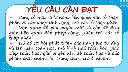 – Củng cố một số kĩ năng liên quan đến số thập