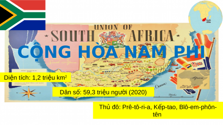 Đ A Ị LÍ 11 – K T Ế N I T Ố RI TH C Ứ PH N Ầ HAI: Đ A Ị LÍ KHU V C Ự VÀ QU C G Ố IA Gv: Tr n ầ Th ịHà CỘNG HÒA NAM PHI Diện tích: 1,2 tri u ệ km2 Dân s : ố 59,3 tri u ệ ngư i ờ (2020) Thủ đô: Prê-tô-ri-a, K p ế -tao, Blô-em-phôn- tên BÀI 31: KINH T C Ế NG HÒA Ộ NAM PHI