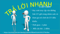 tham gia trò chơi do GV điều 1 khiển. - Thời gian : 2 phút - Mỗi câu hỏi : 2 điểm