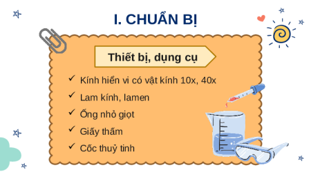 QUAN SÁT NGUYÊN SINH VẬT NỘI DUNG BÀI HỌC I CHUẨN BỊ II CÁCH TIẾN HÀNH III THU HOẠCH